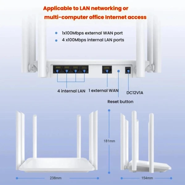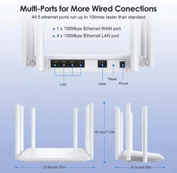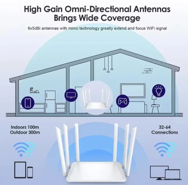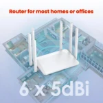 Une antenne omnidirectionnelle à gain élevé offre une large couverture grâce à ses six antennes de 5 dBi qui amplifient considérablement le signal et garantissent une couverture Wi-Fi optimale.
