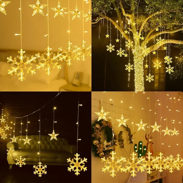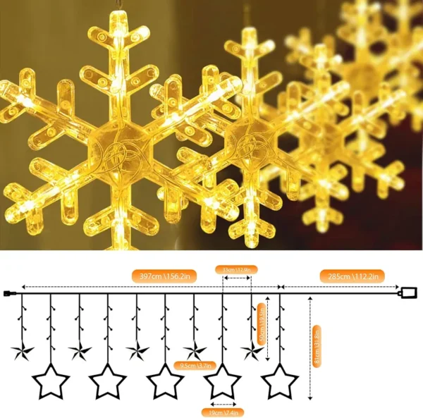 Nos guirlandes lumineuses flocons de neige sont composées de six grands flocons et six petites étoiles, avec 126 LED diffusant une lumière colorée, créant une ambiance féérique et romantique.