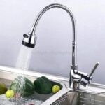 Robinet d’évier de cuisine avec bec pivotant – Plaque contemporaine en céramique chromée – Bobine – Rotation à 360°