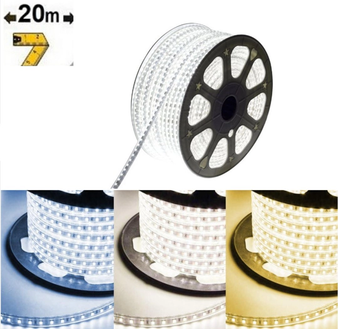 Ruban LED – 20 Mètres – 220V Recoupable – IP65 – Blanc Froid 6000K – 8000K