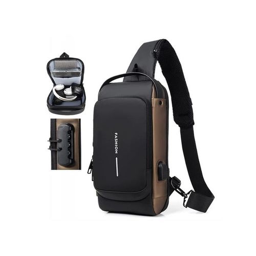 Sac à Bandoulière Antivol Pour Hommes – Pour Voyage – Sac Messager – Sac De Poitrine De Luxe – USB à L’intérieur – Multifonction – Étanche