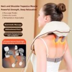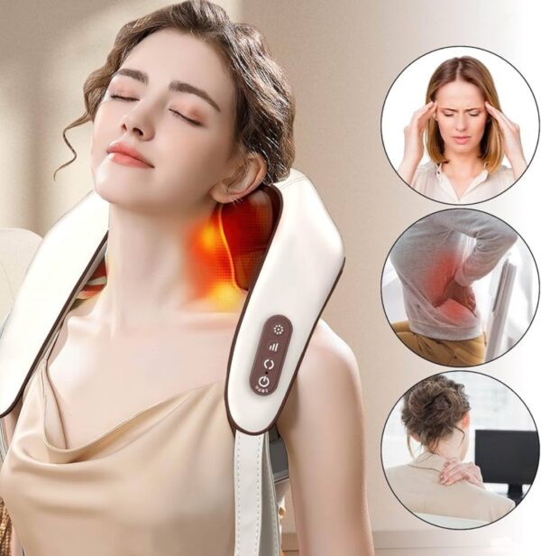 L’écharpe de massage peut simuler doucement et confortablement le massage de la main humaine, vous apporter une toute nouvelle expérience, fonction de chauffage infrarouge en option et thermostat intelligent intégré, fournit une température douce, un pétrissage vers le haut des points d’acupuncture, une pression vers le bas sur le muscle trapèze, aide à soulager rapidement les douleurs au cou et aux épaules.