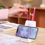 Son design ingénieux permet également une utilisation comme porte-stylo et rangement de fournitures, faisant de ce support un accessoire idéal pour le bureau, l’espace d’étude ou la maison.