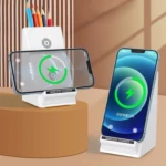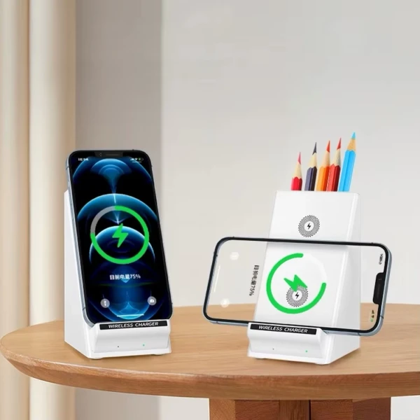 Ce support de bureau multifonction avec chargeur sans fil est conçu pour offrir confort, praticité et organisation au quotidien. Il permet de recharger votre smartphone aussi bien à l’horizontale qu’à la verticale, tout en l’utilisant librement pour travailler, étudier ou regarder du contenu.