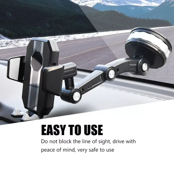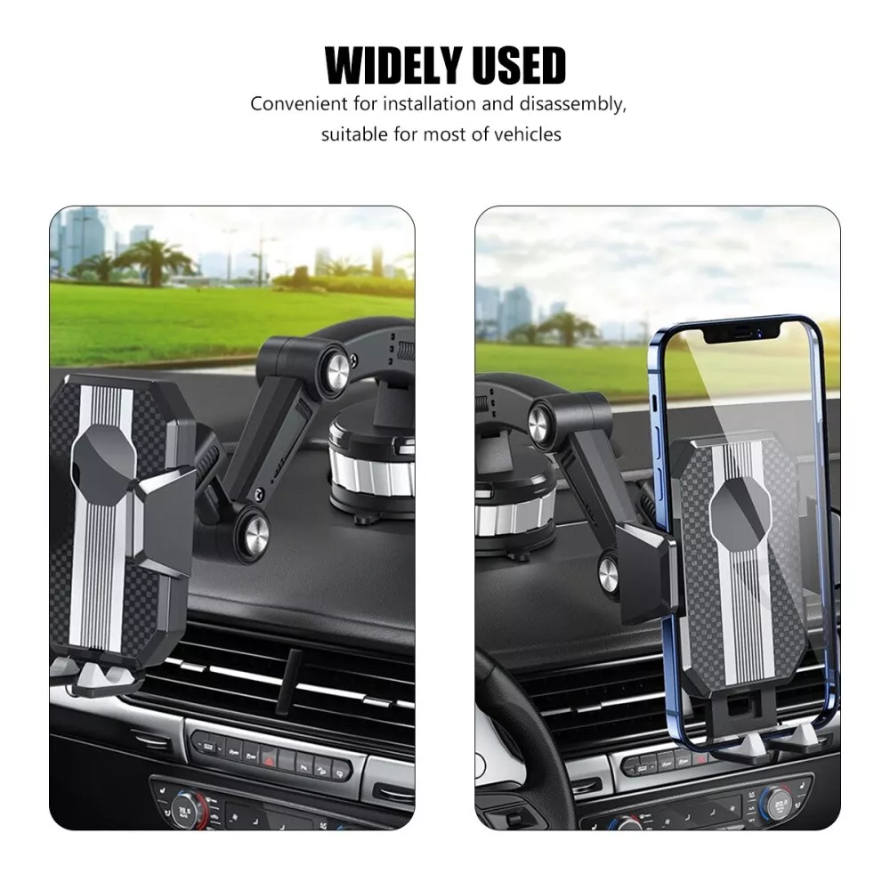 La conception de l’étau à grand espace vous permet de verrouiller ou de libérer votre téléphone d’une seule main, économisant du temps et des efforts, et le support de téléphone portable peut être caché lorsqu’il n’est pas utilisé, de sorte qu’il n’interfère pas avec votre vue et n’affectera pas la sécurité de conduite.