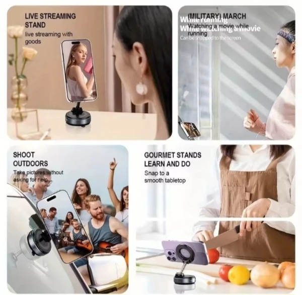 Ce support de téléphone est doté d’un système de ventouses permettant une fixation double face et sécurisée sur diverses surfaces.