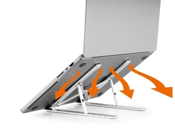 Ce support pour ordinateur portable est conçu pour une portabilité et un rangement faciles.
