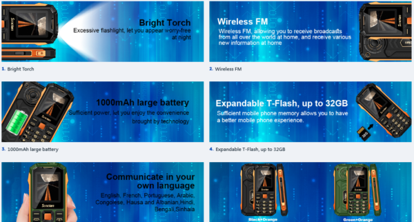 Téléphone Portable De Camping Avec Torche Et Power Bank – Sunelan ULTRA 70 – Orangé