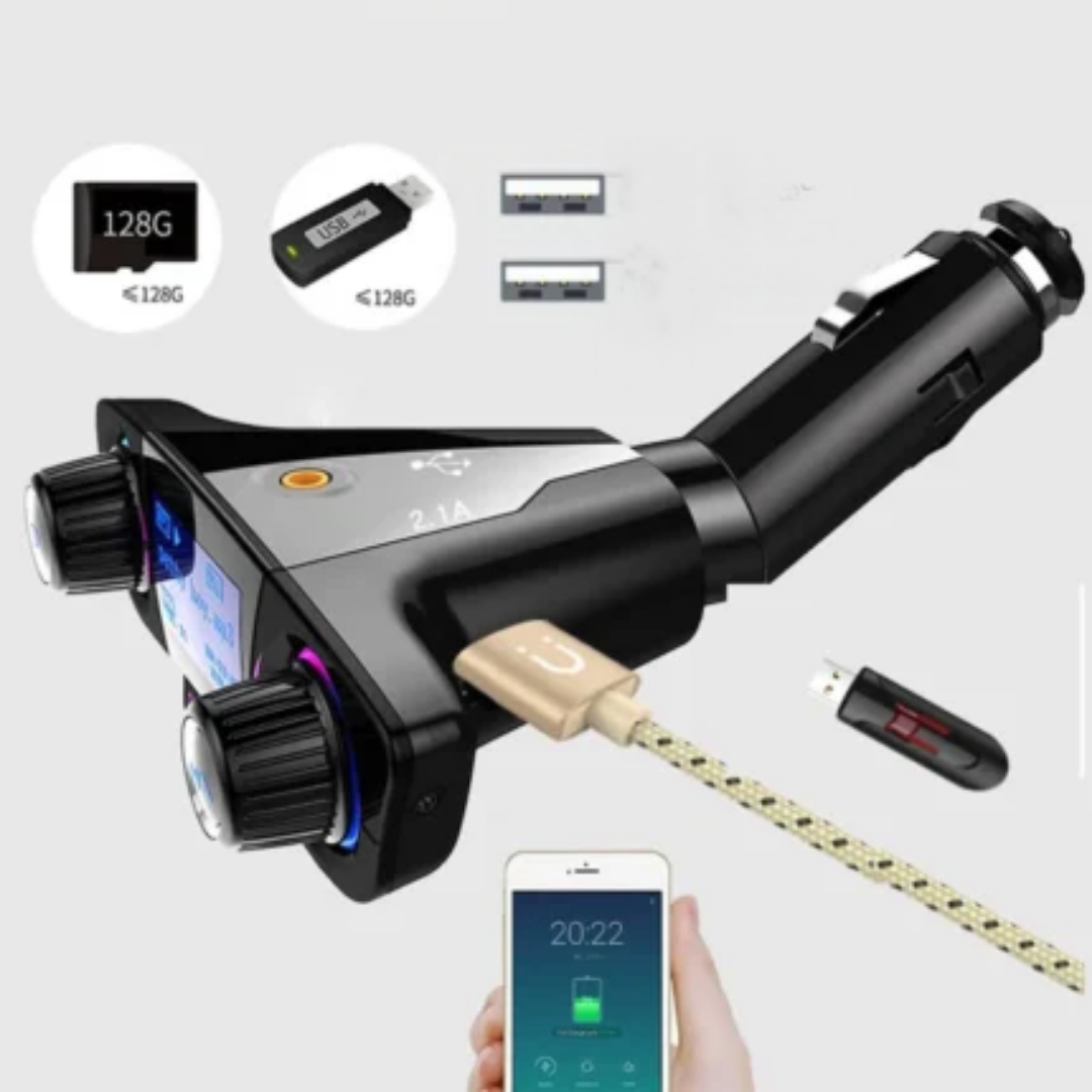 Transmetteur FM facile à utiliser avec Bluetooth ! Il permet une connexion sans fil entre le téléphone et l’autoradio grâce à la technologie Bluetooth.